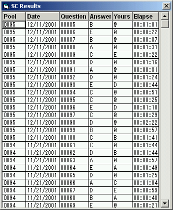 - 演習結果を問題プール別に表示できます。演習後のレビューに便利です。ほとんどの場合、この画面で演習結果を見ながら、レビュー画面で問題をどうして間違えたのか、解法ポイントは何か、などを学習する使い方が効果的です。