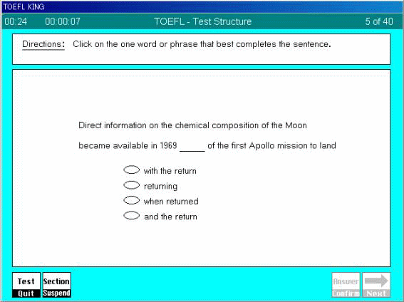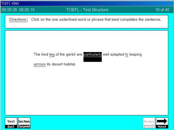 文法の演習は本試験と同様の操作感で演習できます。1回分の演習は約25分で想定していますが、サスペンド機能により演習途中で一旦中断し、後日中断したところから再開することができます。