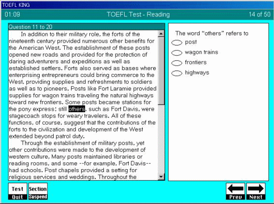 V.読解 読解の演習は本試験と同様の操作感で演習できます。1回分の演習は約70分で想定していますが、サスペンド機能により演習途中で一旦中断し、後日中断したところから再開することができます。