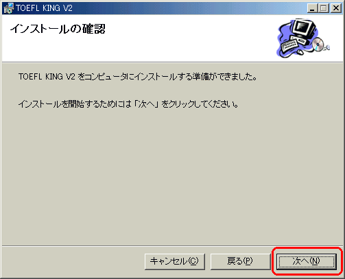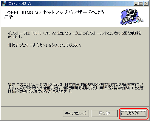 | 3 | 再起動した場合には起動時にWindowsインストーラが自動的にTOEFLKINGのインストールの準備をします。![]() |