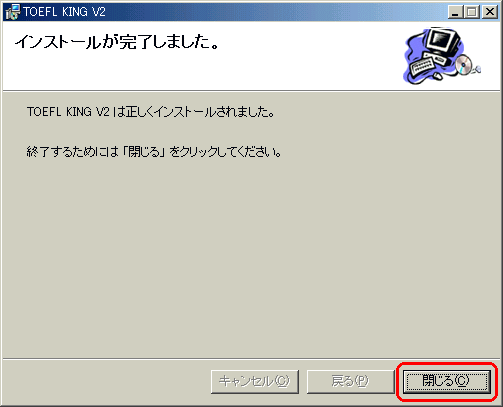 | 16 | 下図の画面で「閉じる」ボタンをクリックしてTOEFLKINGのアンインストール作業は完了です。![]() |