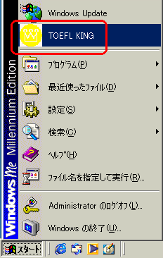 | 9 | 動作確認をするために、スタート → TOEFLKING の順で選択して TOEFLKING を起動します。![]() |