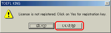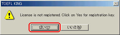 | 1 | TOEFLKING起動して次のメッセージが表示されたら「はい」をクリックします。![]() |